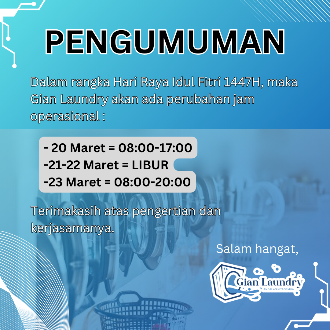 Gian Laundry adalah penyedia jasa laundry Bintaro Kiloan Tangerang Selatan yang melayani antar jemput cucian. Kebanyakan warga Tangerang Selatan sibuk dan tidak memiliki waktu untuk mencuci pakaian sendiri, nah jasa Selengkapnya